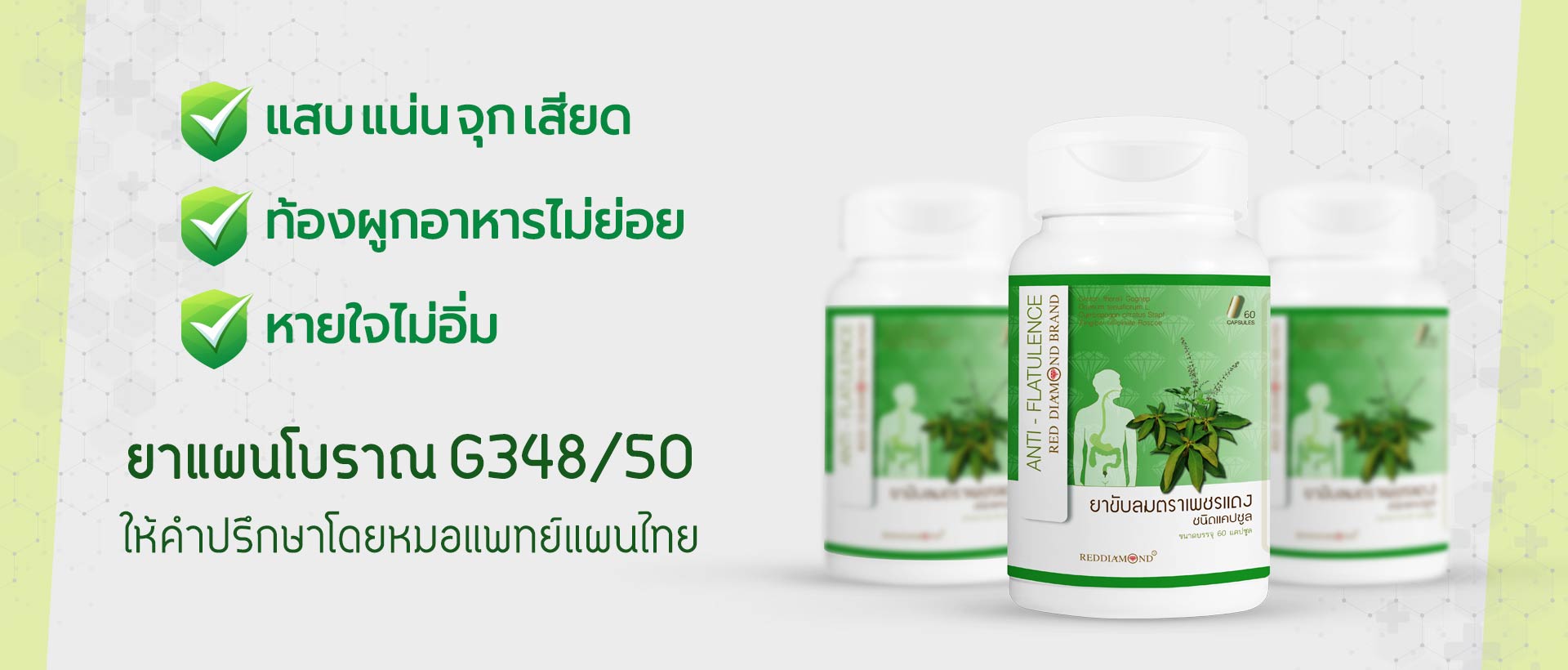 ยาขับลมตราเพชรแดง ตำรับยาจากสมุนไพร 4 ชนิด เปล้าตะวัน กระเพราแดง ขิงแก่ ตะไคร้ มีสรรพคุณขับลมในกระเพาะอาหาร ช่วยบำรุงกระเพาะอาหารและฟื้นฟูระบบย่อย (ในทางแพทย์แผนไทยเรียกว่า บำรุงไฟย่อย หรือ ไฟกองปริณามัคคี) สมุนไพรเปล้าตะวัน มีสารสำคัญเรียกว่า เปลาโนทอล ซึ่งมีคุณสมบัติในการสมานแผลในกระเพาะอาหารและรักษาโรคกรดไหลย้อนได้เป็นอย่างดี สามารถดูรายละเอียดเพิ่มเติมและสั่งซื้อ กดที่รูปภาพข้างล่างได้เลยค่ะ